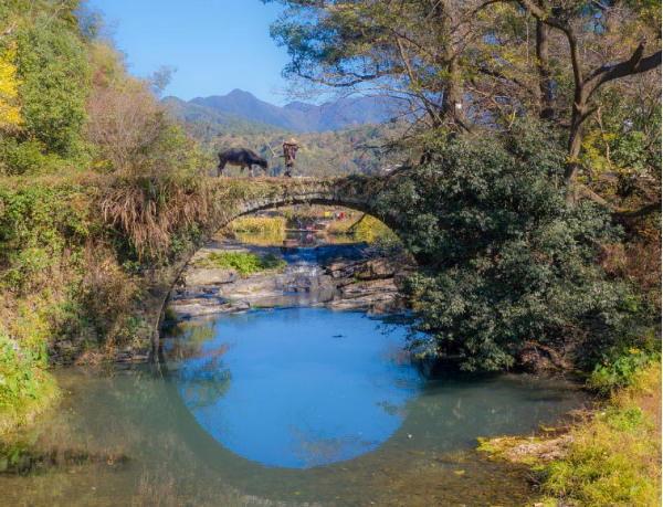 到達官坑后,拍攝官坑的古村落風貌。官坑的建筑風格獨特,以青石板路和古老的民居為特色。可以拍攝村民在古橋上的活動,以及官坑村周圍的山水環繞的美景。