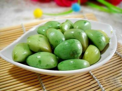 泡臘八蒜是一道主要流行于華北地區的傳統小吃,是臘八節的節日食俗。臘八蒜材料其實非常簡單,就是醋和大蒜瓣兒。做法也是極其簡單,將剝了皮的蒜瓣兒放到一個可以密封的罐子,瓶子之類的容器里面,然后倒入醋,封上口放到一個冷的地方。慢慢地,泡在醋中的蒜就會變綠,最后會變得通體碧綠的,如同翡翠碧玉。