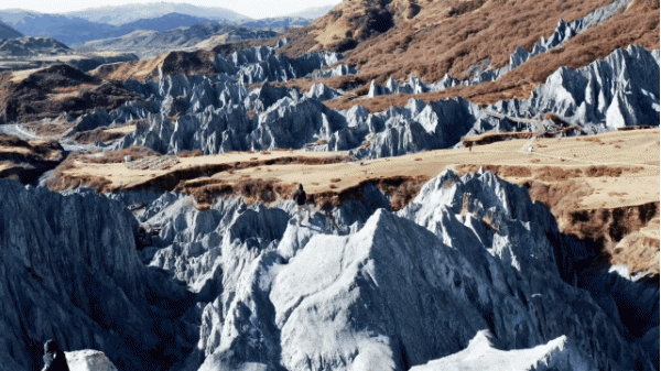 然后我們抵達八美【墨石公園】。這里被稱為“中國地質百慕大”,也有人說這里是“川西的冰島”,是我國唯一的高原石林景觀,同時也是318道上新晉的網紅打卡地,具有“春賞格桑夏避暑,秋觀彩林冬踏雪”的風光;墨石公園有著許多千姿百態的奇幻墨石,忽而是高聳綠地又忽而裸露出冷峻的黑灰巖面,參差起落極具外星球般的異域風情。