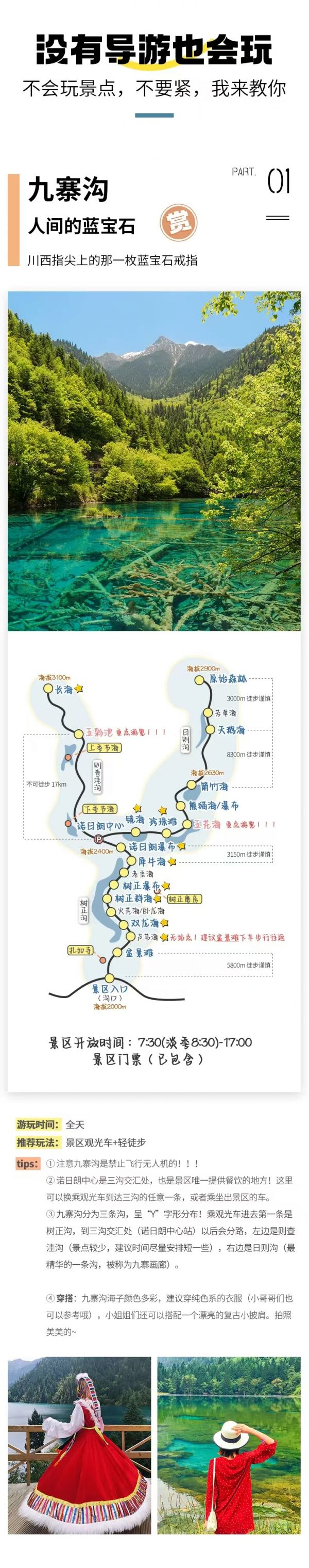 (2)九寨溝面積較大游客需求不一,因此主要以游客自助游形式游覽,如無領隊陪同望您諒解。游覽開始前領隊會與您約定好集合時間,請務必按時到達指定地點,避免耽誤大家接下來的行程;