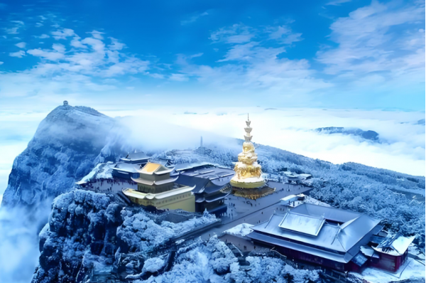 午餐后,乘坐景區觀光車(2個小時路程)到達雷洞坪停車場。步行1.5公里到達接引殿坐金頂往返索道上【金頂】,游金頂華藏寺,金殿,銀殿,銅殿,大型觀景臺等,觀世界最高佛教朝拜中心,登攝身崖,俯視川西平原的優美風光,充分感受峨眉“雄,秀,奇,險,幽”的五大特色。然后原路乘索道下行至接引殿返回至雷洞坪停車場乘坐景區觀光車到達萬年停車場。