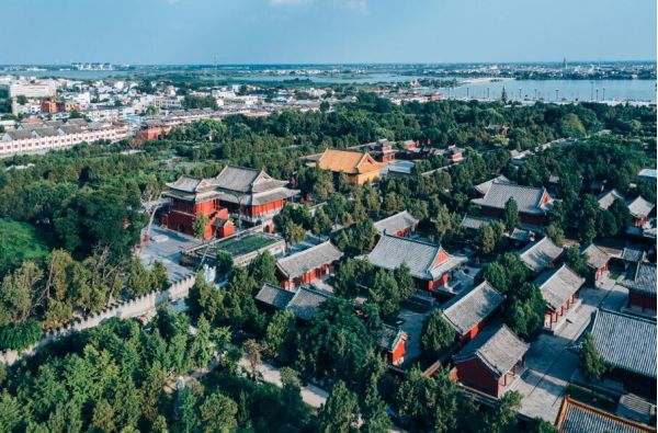 太昊陵廟占地面積875畝,南北長750米,分外城、內城、紫禁城三道皇城。從南至北的中軸線上依次為渡善橋、午朝門、道儀門、先天門、太極門、統天殿、顯仁殿、太始門、八卦壇、太昊陵墓、蓍草園。太昊陵廟以先天八卦數理興建,是中國帝王陵廟中大規模宮殿式古建筑群之孤例。1996年11月20日,太昊陵廟被中華人民共和國國務院公布為第四批全國重點文物保護單位。