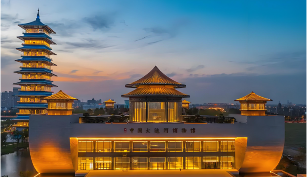 【中國大運(yùn)河博物館】簡稱“運(yùn)博”,全稱“揚(yáng)州中國大運(yùn)河博物館”,國家一級博物館,位于江蘇省揚(yáng)州市廣陵區(qū)開發(fā)東路(三灣濕地公園西北側(cè)約150米),占地200畝,總建筑面積約8萬平方米,隸屬江蘇省文化和旅游廳,是集文物保護(hù)、科研展陳、休閑體驗(yàn)為一體的地方現(xiàn)代化綜合性博物館,是大運(yùn)河國家文化公園建設(shè)標(biāo)志性項(xiàng)目,由南京博物院負(fù)責(zé)布展和運(yùn)營。揚(yáng)州中國大運(yùn)河博物館展覽以“運(yùn)河帶來的美好生活”為總體定位,設(shè)有“大運(yùn)河—中國的世界文化遺產(chǎn)”“因運(yùn)而生—大運(yùn)河街肆印象”2個基本陳列,以及“運(yùn)河上的舟楫”“運(yùn)河濕地尋趣”“大明都水監(jiān)之運(yùn)河迷蹤”等9個專題展覽。
