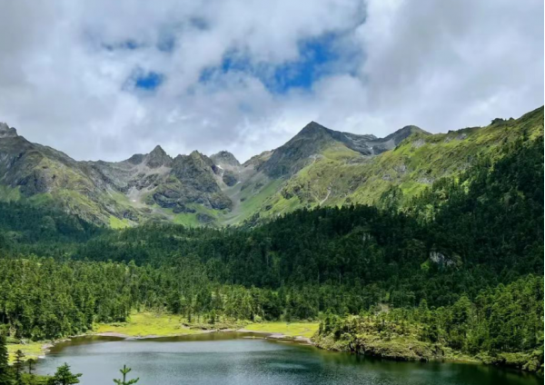 中國湖”形似中國地圖。15座海拔超4000米的雪山與廣袤草甸相映成趣,原始森林古木繁茂,松蘿垂掛,龍膽草、綠絨蒿點(diǎn)綴其間,瀑布溪流靈動壯美。