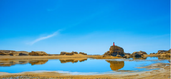 離開 315U 型公路繼續前行,就到了神奇的水上雅丹。這里原是干涸雅丹地貌,因地下水上升淹沒部分雅丹群,形成獨一無二的水上奇觀。湛藍湖水與形態各異的雅丹相互交融,宛如漂浮的城堡。有的雅丹像展翅雄鷹,有的像古老城堡,有的像靈動海豚,令人感嘆大自然的鬼斧神工。乘坐游船穿梭其中,微風拂過,湖面漣漪陣陣,仿佛置身夢幻之境。這里的日出日落絕美,金色陽光灑下,水上雅丹一片金黃,美到令人陶醉。