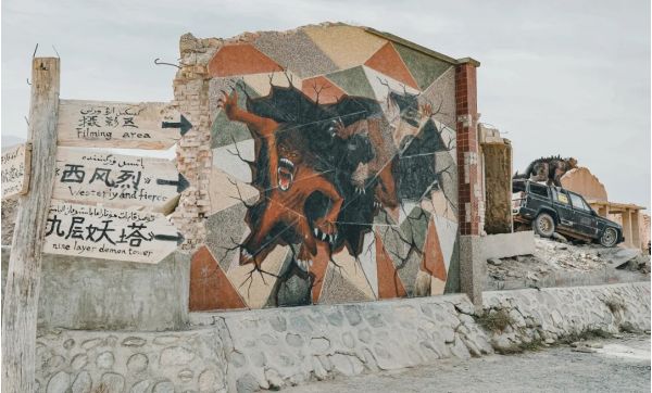 離開當金山,朝著阿克塞石油小鎮前行。這座曾經繁華的小鎮,如今只剩斷壁殘垣,彌漫著神秘滄桑的氣息。曾經石油工人在此奮斗,熱鬧非凡,隨著石油資源枯竭,人去樓空,只留下這些歷史遺跡。因多部影視作品在此取景,漫步其中,電影場景仿佛重現,讓人感嘆歲月變遷。