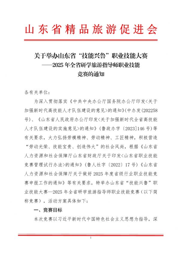 下列鏈接為”關于開展山東’技能興魯‘職業大賽2024年全省研學指導師職業技能的通知“原文件: