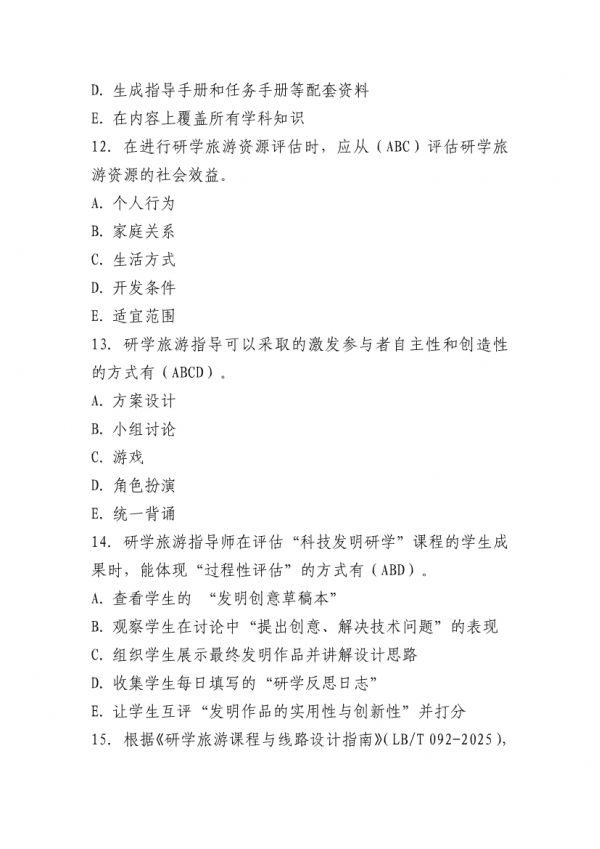 下列鏈接為”山東省“技能興魯”職業技能大賽 2025 年全省研學旅游指導師職業技能競賽理論知識測試題庫“