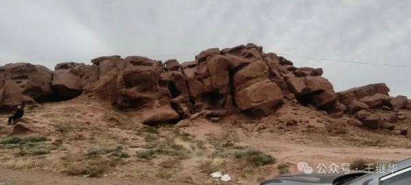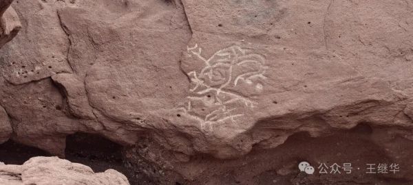 這些巖畫位于呼和溫都爾鎮(zhèn)西補(bǔ)隆嘎查炭窯溝口,周邊是白堊紀(jì)形成的紅色砂巖(因含氧化鐵呈紅色,硬度約四度)。