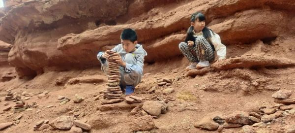 指尖撫過20多米高的巖壁,能觸到風(fēng)蝕雨琢留下的粗糙質(zhì)感,仿佛觸摸著7500萬年的時光痕跡。