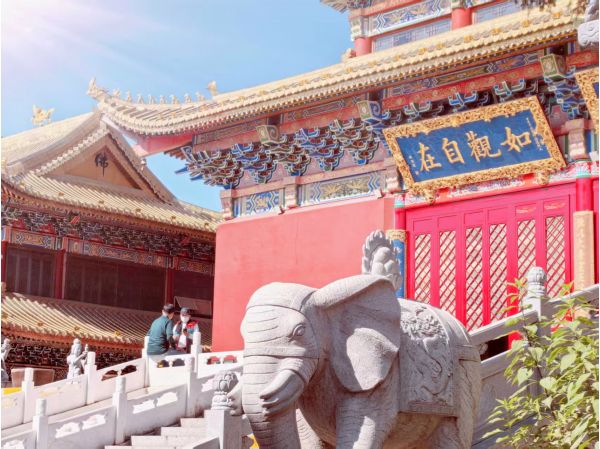 這座藏在老城區的清代漢傳佛寺,節日尾聲已無喧囂,只有檐角風鈴輕響。四合院式的布局里,金瓦紅墻映著藍天,觀音殿內香火繚繞,