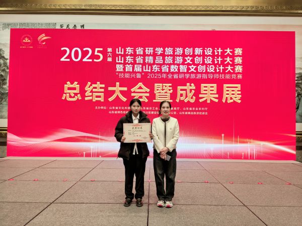 聊城職業技術學院學子劉笑在劉寶平老師全程悉心指導下山東省“技能興魯”全省研學旅游指導師職業技能競賽中憑借過硬的專業素養和亮眼的賽場表現,勇奪學生組二等獎。