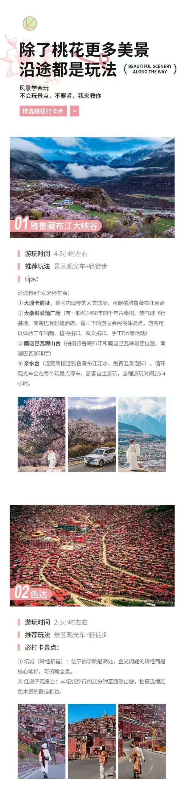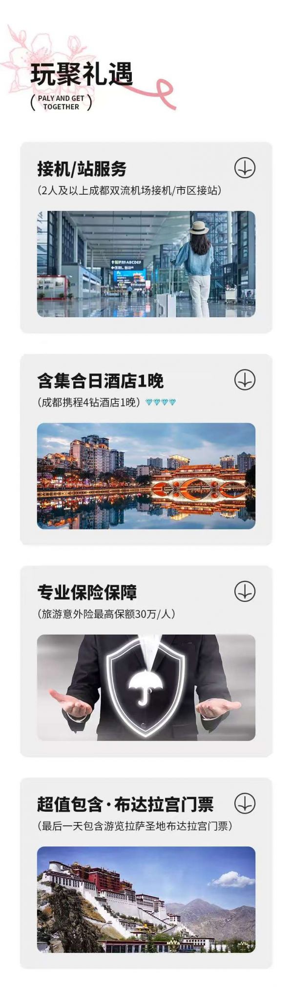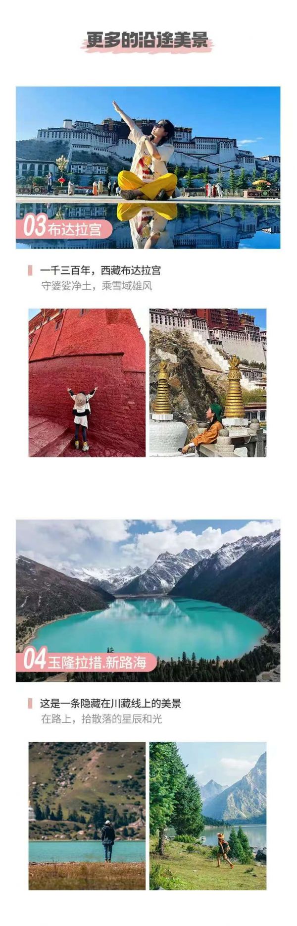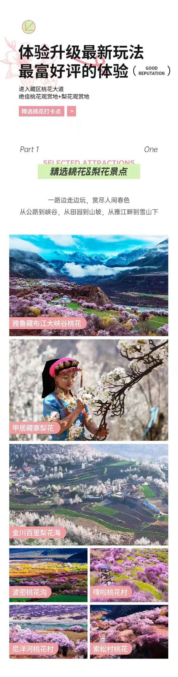 包含甲居藏寨門票、雅魯藏布江大峽谷門票、米堆冰川門票、嘎拉桃花村門票、德格印經院門票、巴松措門票、布達拉宮門票。