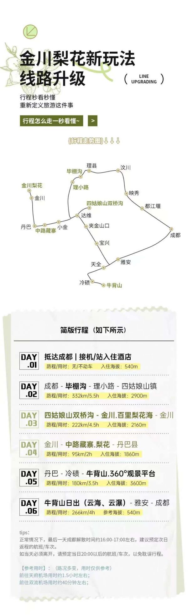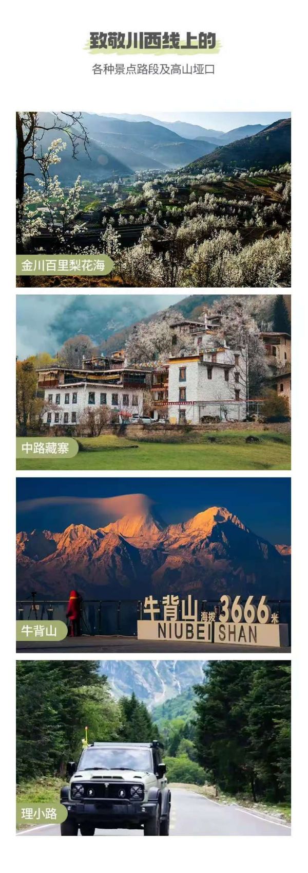 (3)此日行程較長,可能會稍感枯燥,下午的金川才是我們今日的行程重點,所以沿途停車較少,敬請見諒。