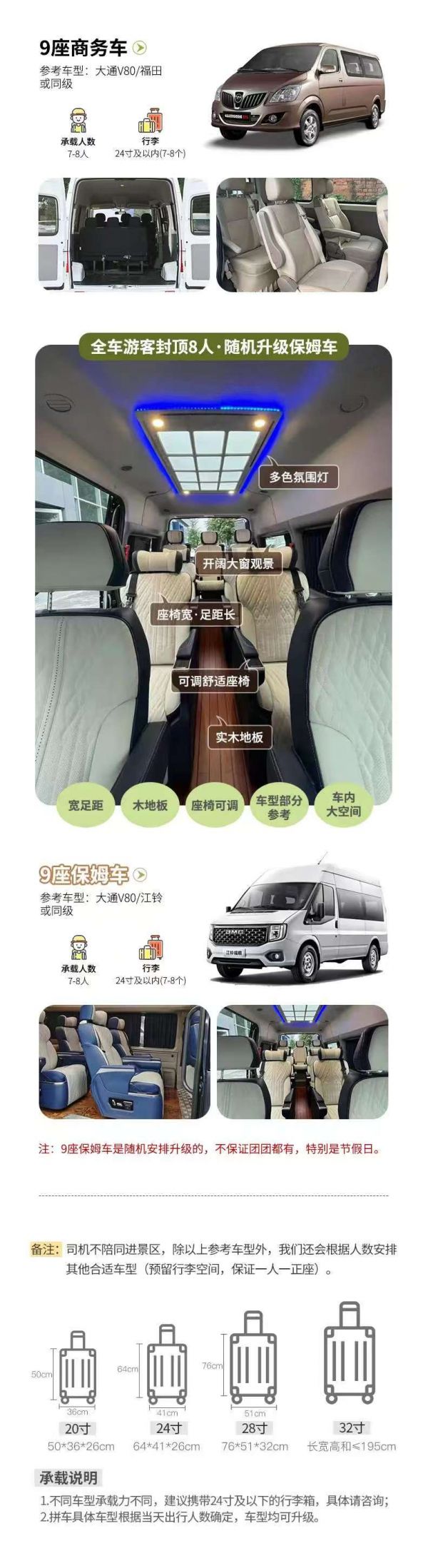 備注:車型承載力有限,攜帶行李為24寸或以下行李箱。
