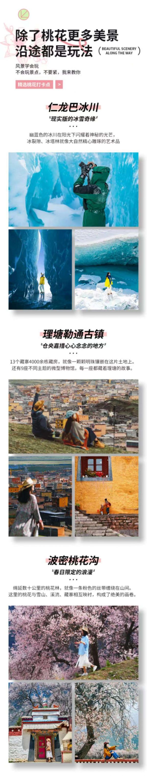 仁龍巴冰川門票、波密桃花溝藏家家訪、嘎拉桃花村門票、秀巴千年古堡門票、布達拉宮(門票+預約手續費+講解)、羊卓雍措門票