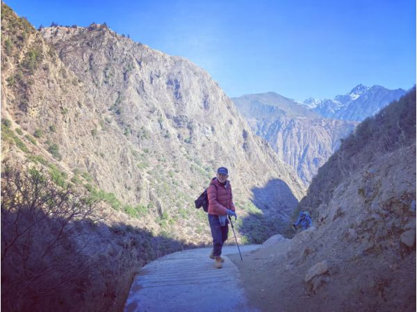 隨后大家在格閣家出發沿著尼農大峽谷徒步進入雨崩。