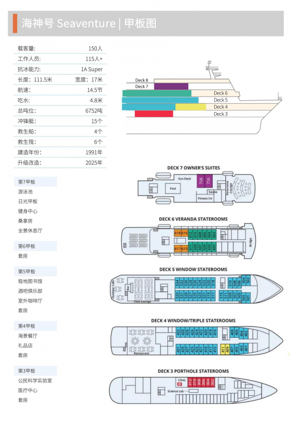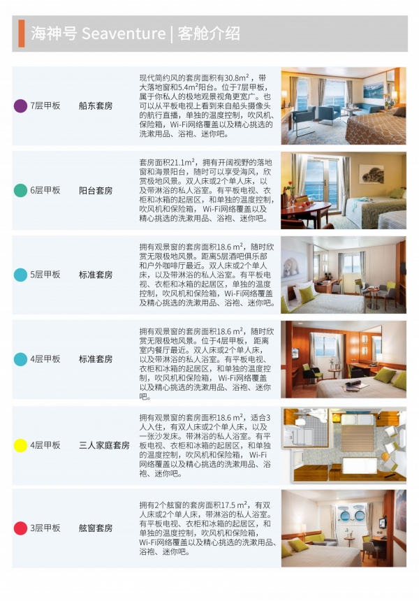 √郵輪設備設施和服務及極地目的地的介紹來源于參考材料,如果與實際有出入那么不視作旅行社違規。
