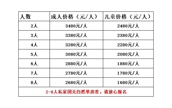 【成團說明】2-8人私家團,一單一團隨時出發,