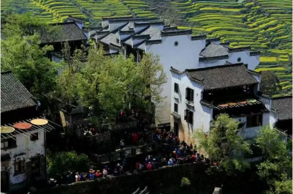 早餐后前往梯云村落、夢幻田園--篁嶺人家,一個懸掛在山坡上的古村落,群山環繞的數百棟徽派古民居在百米落差的坡面錯落有序,與對面層層疊疊的千畝梯田花海遙相呼應,地無三尺平,自然條件的局限卻激發了先民的想象和創造力,從而在無意間造就了一處中國絕無僅有的“曬秋人家”風情畫。篁嶺屬典型山居村落,民居圍繞水口呈扇形梯狀錯落排布。篁嶺因”曬秋”聞名遐邇,村落“天街”似玉帶將經典古建串接,徽式商鋪林立,前店后坊,一幅流動的縮寫版“清明上河圖”。