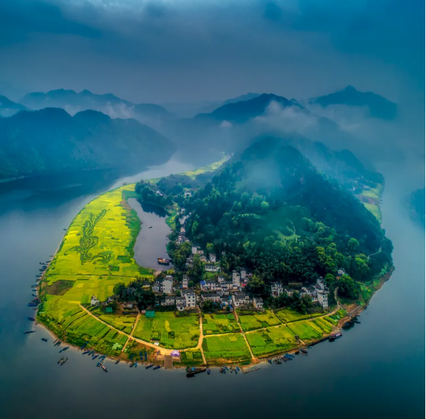 八分半山一分水,半分農田和莊園。蜿蜒逶迤的新安江是古徽州文明的搖籃。