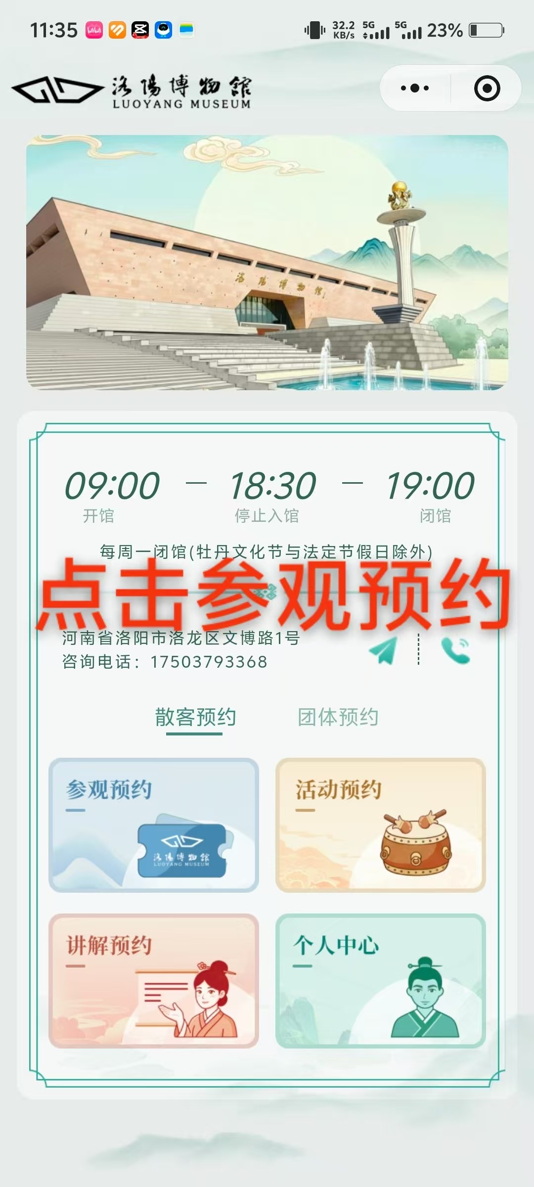 咨詢電話:每周二至周日和法定節假日(開放期間)撥打17503793368,每周一撥打0379-69901002。