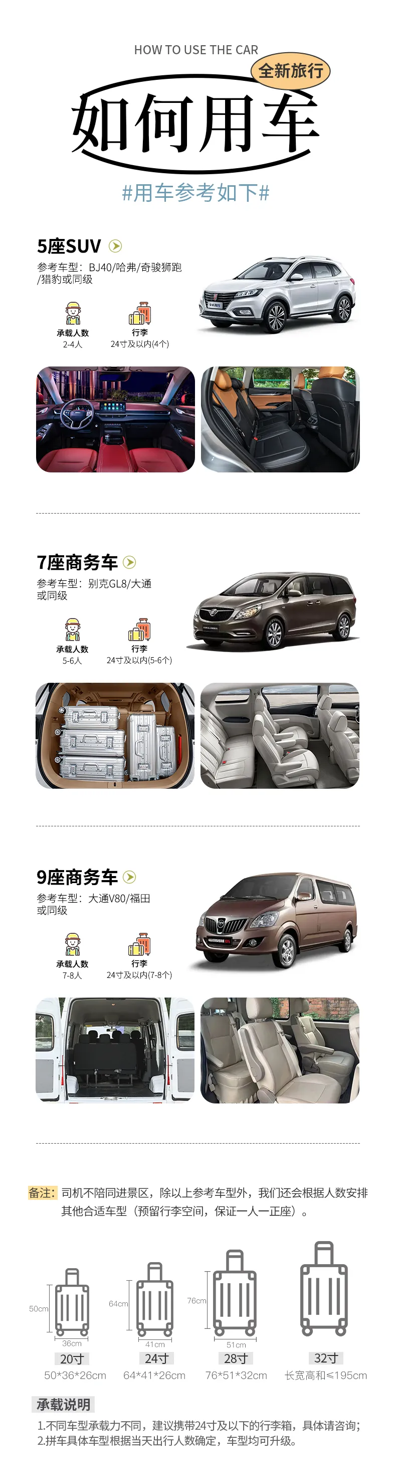 備注:車型承載力有限,攜帶行李為24寸或以下行李箱。