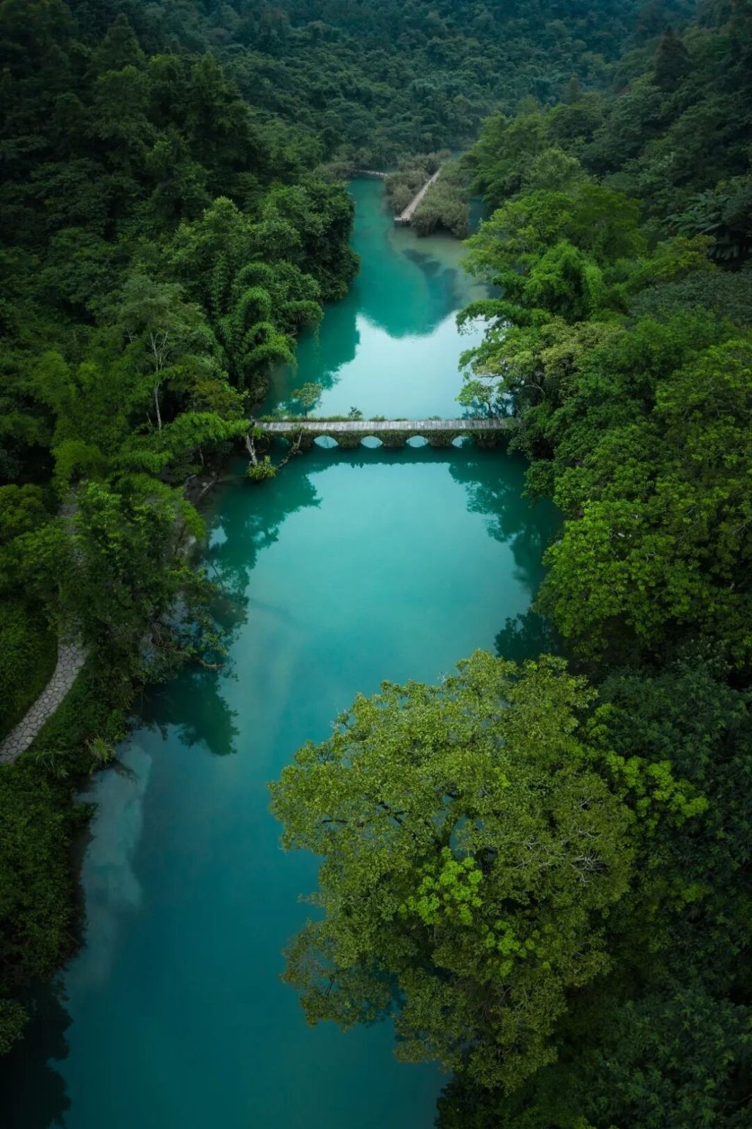 這里把山、水、林、瀑組合在一條動線里:入口是清代的小七孔古橋,往內依次可以看到臥龍潭、拉雅瀑布以及多級跌水瀑布群,水體顏色偏藍綠,辨識度很高;中段還有“水上森林”等典型景觀,整體游覽邏輯清晰,不需要反復折返。