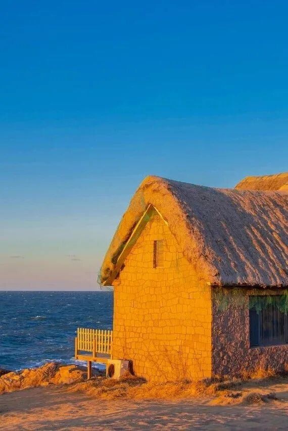 夕陽下的海草房