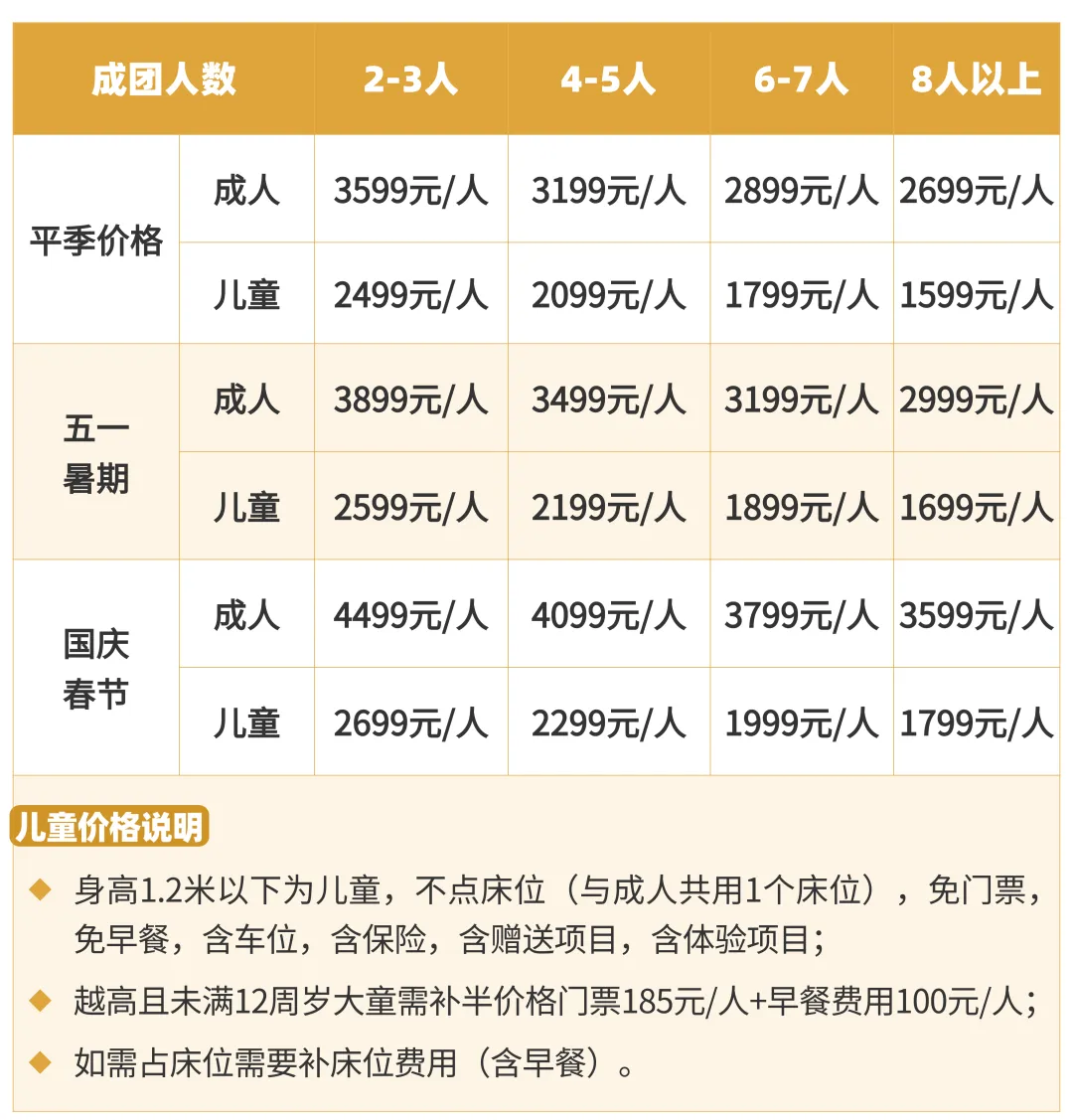 ?身高1.2米以為兒童,不占床位(與成人共用1個床位),免門票,免早餐,含車位,含保險,含贈送項目,含體驗項目;