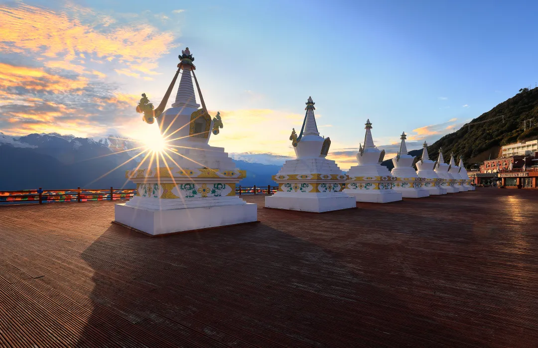 早餐后出發(fā)前往松贊林寺景區(qū)我們乘坐景區(qū)環(huán)保車到達(dá)拉姆央措湖,徒步轉(zhuǎn)湖后進(jìn)入松贊林寺參觀游覽。其建筑建于公元 1679 年, 噶丹?松贊林寺也稱“云南第一寺”是云南省規(guī)模最大的藏傳佛教寺院,在整個藏區(qū)都有著舉足輕重的地位。因其外觀布局酷似布達(dá)拉宮,所以又有“小布達(dá)拉宮”之稱。 隨后我們沿214國道途經(jīng)尼西后和奔子欄鎮(zhèn),我們中餐可以在尼西或奔子欄鎮(zhèn)享用。午餐后沿滇藏線214國道進(jìn)入梅里雪山國家公園的金沙江月亮灣,金沙江遭遇了一座渾圓的金字塔型山峰,金色的江水于是繞著山峰流出了一個標(biāo)準(zhǔn)的“倒Ω”形,這就是很多攝影作品中的金沙江大拐彎;游覽完月亮灣后進(jìn)入白茫雪山腹地,穿越隧道經(jīng)德欽縣城約傍晚抵達(dá)飛來寺入住酒店。