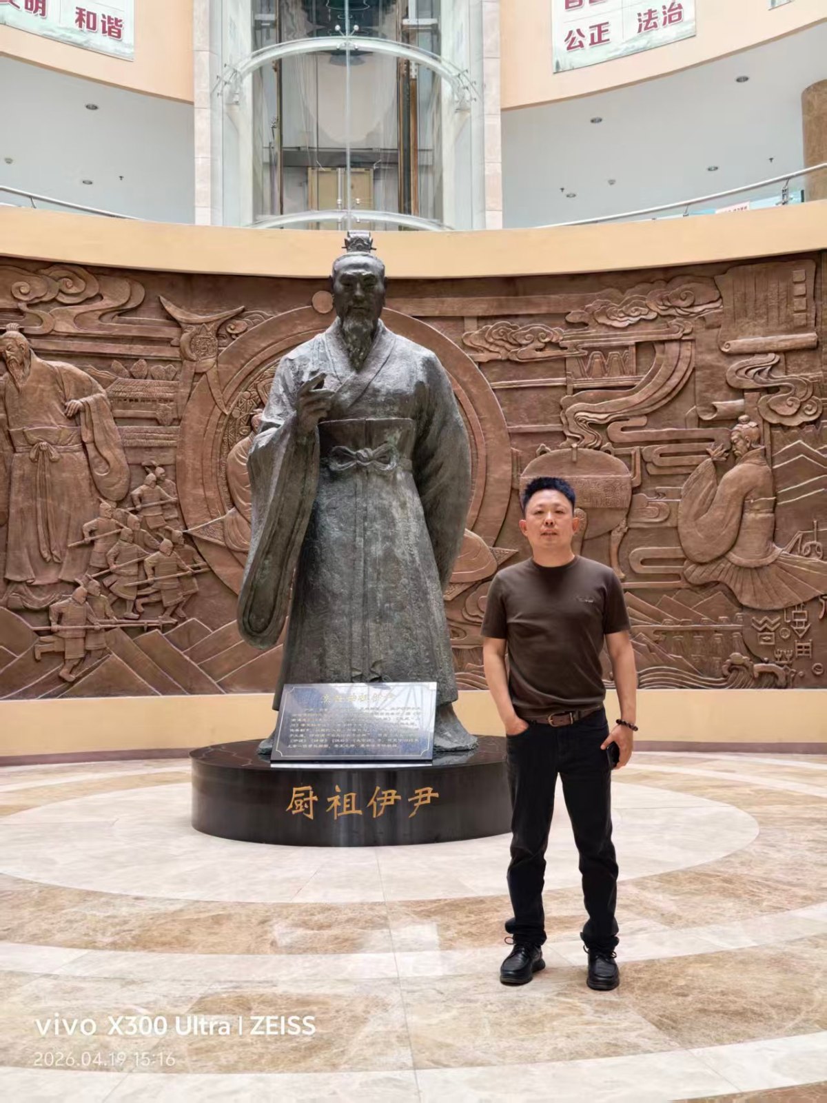 飯后我們去了中國烹飪文化博物館。一踏入大廳,首先映入眼簾的便是中華廚祖伊尹的塑像。他是五味調和理念的開創者,更是中華飲食烹飪理論的文化源頭。
