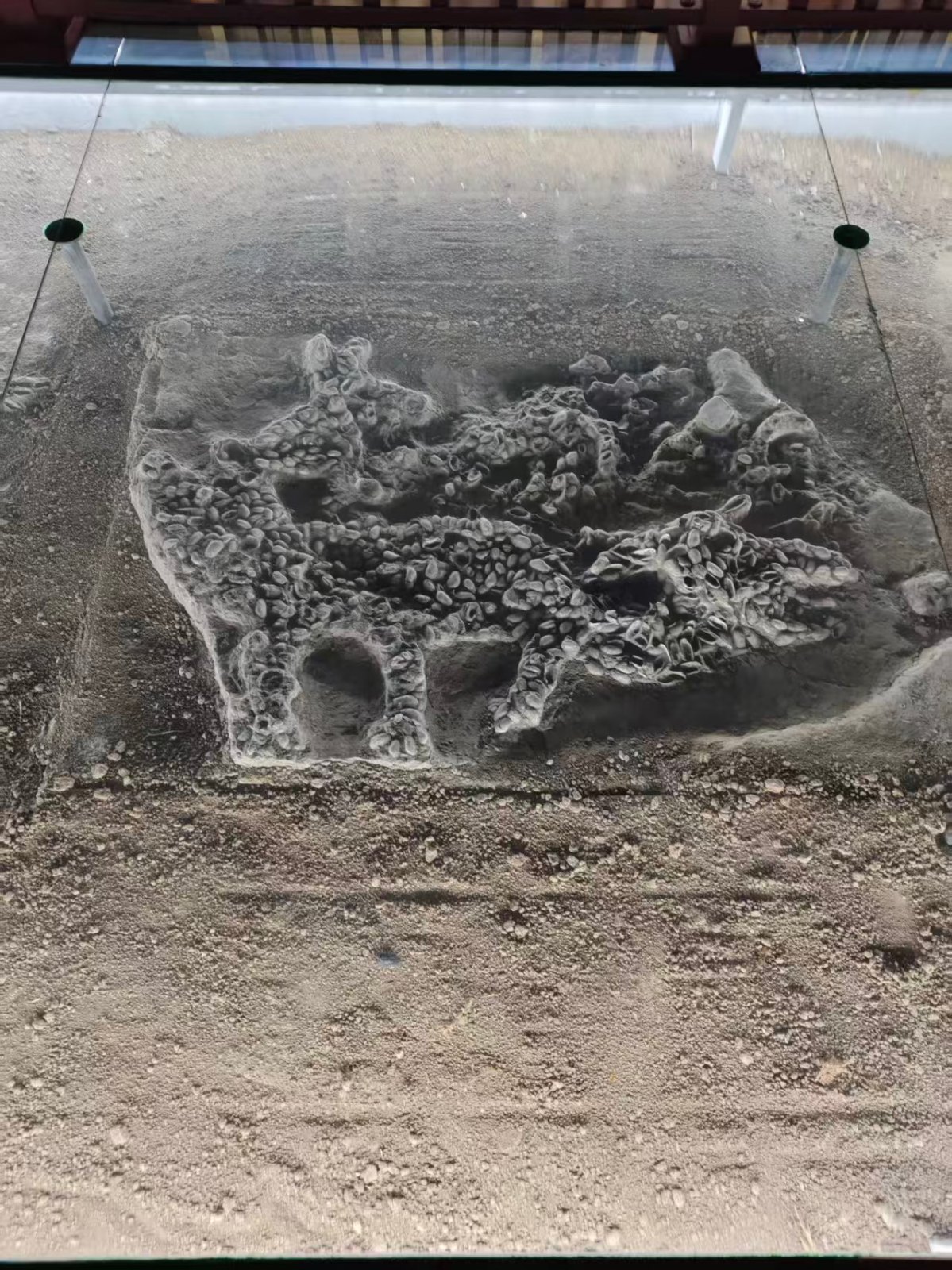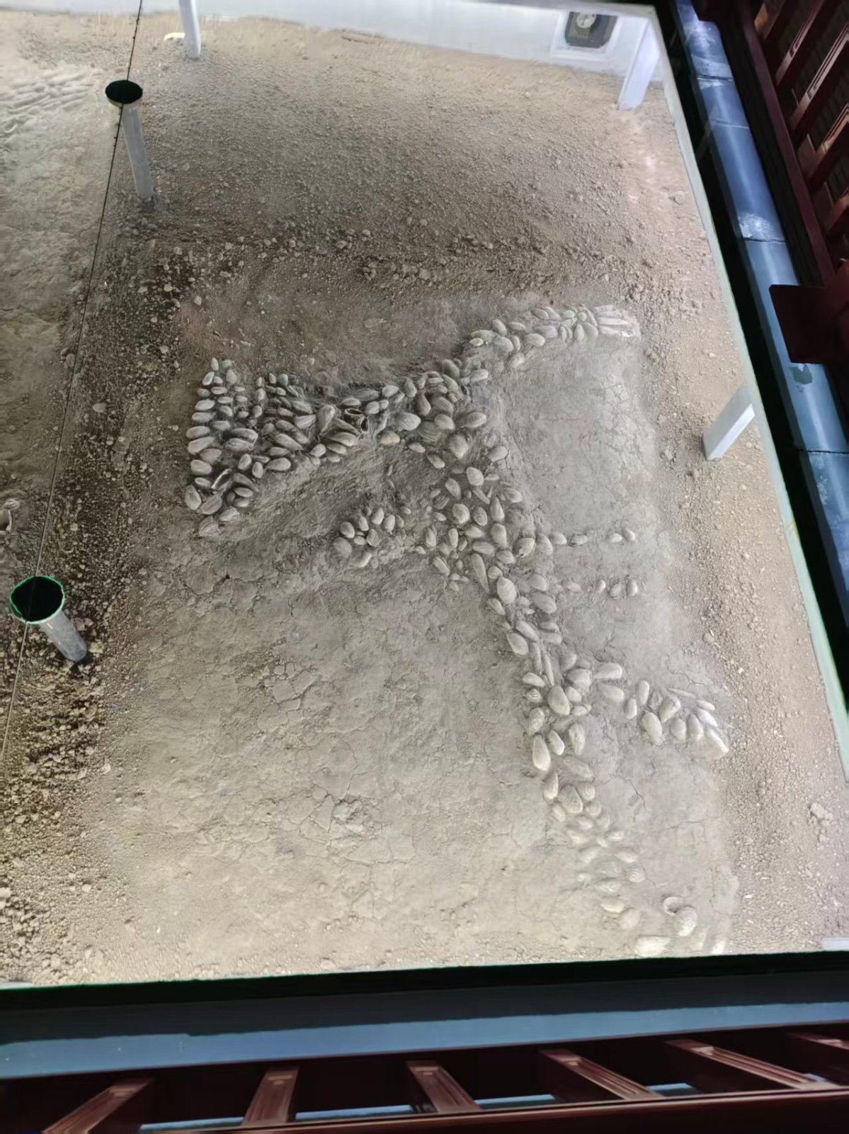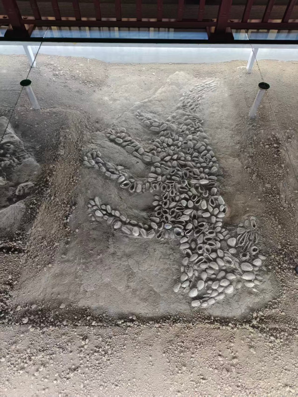 第三組為人騎龍、猛虎奔走的形象,構思奇特,十分少見。據了解原本存有四組蚌塑遺跡,第四組并未對外展出,更添幾分歷史神秘感。但時至今日依舊能感受到上古文明的震撼,而我們也十分幸運,成為當天最后一批進入參觀的人。