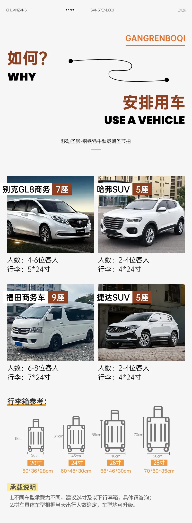 交通:2-8人小團(tuán),全程根據(jù)人數(shù)安排車輛。