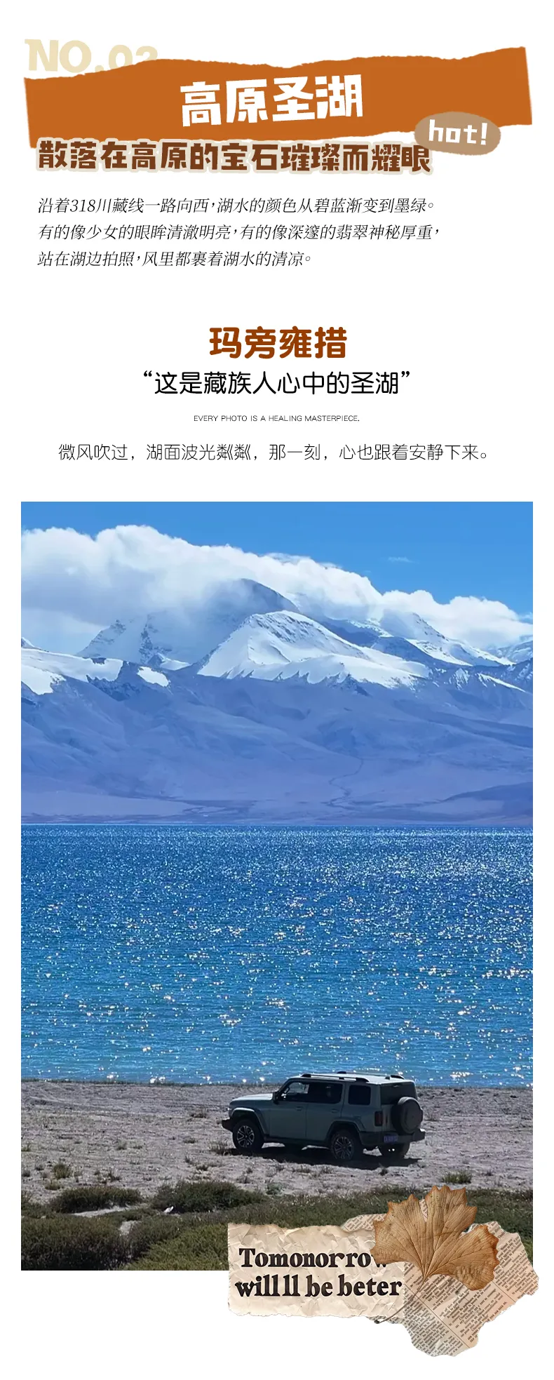 出發(fā)與途中風(fēng)光:清晨從拉薩出發(fā),沿著 318 國道前行。拉薩作為西藏的首府,充滿著濃郁的宗教氛圍和獨(dú)特的藏式風(fēng)情,沿途能看到布達(dá)拉宮等標(biāo)志性建筑逐漸遠(yuǎn)去。隨著車輛行駛,窗外景色從城市過渡到廣袤的高原,能看到遠(yuǎn)處連綿的雪山、成群的牦牛和藏羚羊在草原上悠然自得。