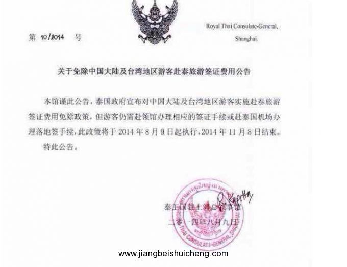 之前,一條“中國游客赴泰游免除3個月簽證費”的消息在朋友圈和微博上瘋傳,但7月29日,泰國駐上海總領事館昨天發布的《關于中國大陸及臺灣地區旅客赴泰旅游簽證費用的聲明》指出,近期有消息稱8月1日至10月底,泰國將為來自中國大陸及臺灣地區游客免簽證費。此消息僅是泰國政府與非政府機構的會議決定,尚未完成相應的審批程序。截至29日,泰國駐上海總領事館未接到泰國外交部關于免除簽證費用的正式通知,領事館將照常收取中國大陸及臺灣地區游客赴泰旅游簽證費用。