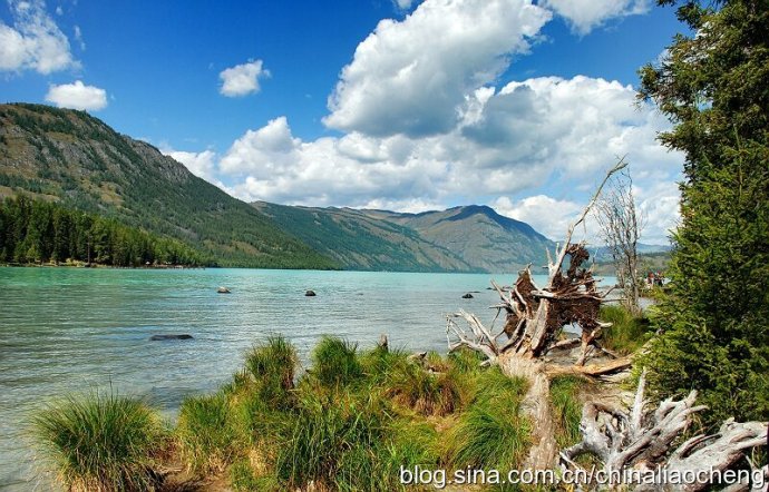 濕地與河灣小心灘共存,地形平坦開闊,各種草類與林木共生,一派生機勃勃的景象。喀納斯湖上端,有