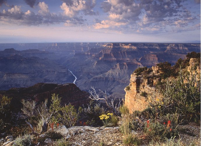 億萬年來,奔騰的科羅拉多河從美國西部亞利桑那洲北部的堪帕布高原中,切割出這令人震撼的奇跡——科羅拉多大峽谷,只要登高遠望,就可以清楚看到坦如桌面的高原上的一道大裂痕,那就是科羅拉多河在這片洪荒大地上的印記。