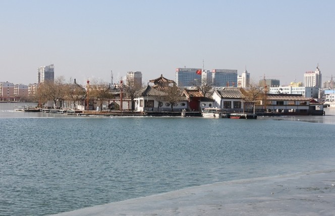 湖心島坐落在聊城東昌湖西北角,面積2750平方米,主要建筑有望岳亭、溢香齋、翠園、沁園、金魚 館、石刻雕塑等。望岳亭在島的西北角,高7.8米,占地80平方米,黃琉璃瓦垂檐六角攢尖頂,六柱拱托,柱間設有坐凳,供游人休息。版權所有山東聊城聊之旅國際旅行社有限公司,轉載必究!垂檐內均繪《聊齋志異》中胭脂故事。建筑精巧宏麗,與光岳樓遙遙相對。溢香齋位于望岳亭北側,為殿堂式歇山頂建筑,共3間,占地60平方米。島的東側和中部為翠園,南部為泌園。西南為金魚館,石刻雕塑設于后花園。