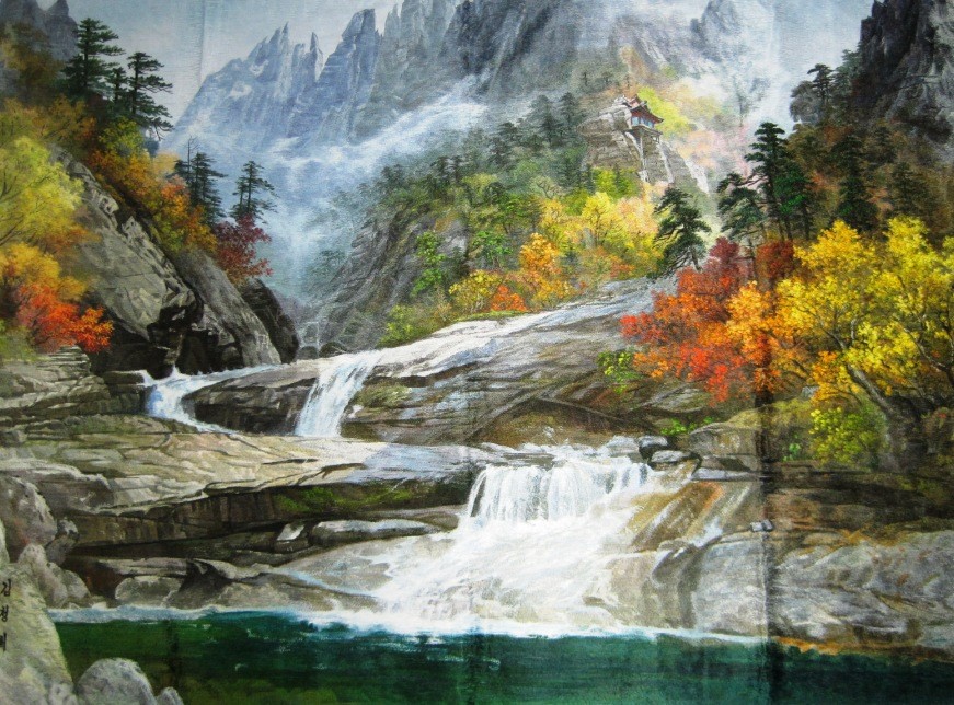然而有趣的是,金剛山隨著四季的變換,在四季里有四個不同的名稱。春季,在明媚的陽光的照射下,巍然屹立的山峰,閃閃發(fā)光,遠(yuǎn)遠(yuǎn)望去就像是一塊閃耀著的金剛石,因此叫作金剛山;夏季,林木蔥郁,松林云海,又稱蓬萊山;秋季,層林盡染,楓葉勝火,漫山紅遍,又稱楓岳山;冬季,草木凋零,石骨嶙峋,又名皆骨山。