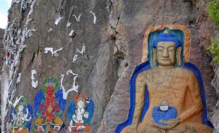 度母神廟往東不遠,有著名的摩崖石刻聶當大佛,這是中外觀光者進入拉薩前的一大景觀,幾乎所有的人都要下車瞻仰度母神廟,并在聶當大佛前留影。