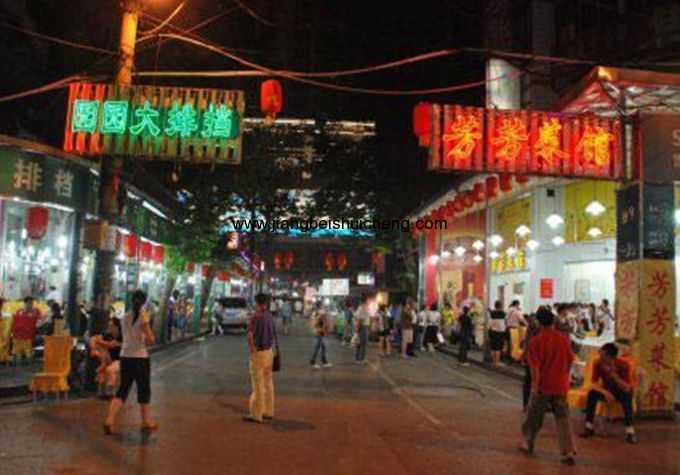 “吉慶街白天不做生意,就跟死的一樣。”池莉在《生活秀》中如此直白描繪。吉慶街在白天就是一條普通、安靜的小街,與近在咫尺、喧囂繁華的中山大道比起來(lái),實(shí)在是清冷寂寞、反差強(qiáng)烈。一到晚上,短短170米的小街在霓虹下頓然活了過(guò)來(lái)。十米寬的小街上,簡(jiǎn)易的圓桌板凳連綿排開(kāi),賣(mài)花的、賣(mài)唱的、拉琴的、吃飯的、擦鞋的……你還沒(méi)搞清楚這些人是從哪個(gè)角落冒出來(lái),而他們已經(jīng)甩開(kāi)嗓子吆喝著和你做起了生意。轉(zhuǎn)眼間,人潮暗涌,催促著你盡快落座,識(shí)趣的老板娘一邊熱情地張羅,一邊和拉琴賣(mài)唱的藝人交流眼色,在一幫人的簇?fù)碇忻悦院ǎ剡^(guò)神來(lái)才發(fā)現(xiàn),自己到底進(jìn)了“芳芳”、“明明”、“順記”、“園園”、“小妹”、“玲玲”、“歪歪”哪家排檔,猝不及防,只能搖頭一笑。幾百個(gè)臺(tái)位滿(mǎn)滿(mǎn)當(dāng)當(dāng),燈火映紅了一張張恣意滿(mǎn)足的笑臉,各色菜肴任君選擇,吹拉彈唱的賣(mài)藝人隨你召喚。這些飽經(jīng)世事滄桑、混跡于三教九流、游走于龍魚(yú)之間的藝人,不僅可以為你演唱各種戲曲、民謠,還善于察言觀色,在你觥籌交錯(cuò),酒酣耳熱之際,用最時(shí)尚的妙言諧語(yǔ)為你現(xiàn)編現(xiàn)演,一首首流行歌曲和民謠演繹得讓你忍俊不禁、捧腹開(kāi)懷。據(jù)說(shuō),吉慶街的藝人有藝術(shù)院校的學(xué)生,有音樂(lè)學(xué)院的教授,還有寫(xiě)字樓的白領(lǐng)。版權(quán)所有山東聊城聊之旅國(guó)際旅行社有限公司,轉(zhuǎn)載必究!午夜十二點(diǎn),整個(gè)氣氛達(dá)到了高潮。對(duì)吉慶街來(lái)說(shuō),夜是白晝,生活理所應(yīng)當(dāng)是從此刻開(kāi)始的。買(mǎi)賣(mài)人不知疲倦地做生意,直至凌晨四點(diǎn)依舊精神抖擻、聲音洪亮,食客們卸下白日里的憋悶,一口氣興奮到深夜,不知?dú)w去。這個(gè)不夜城給人的就是一個(gè)歡暢和痛快,難怪讓人愛(ài)到了骨子里,美得妙不可言。吉慶街沒(méi)有安靜的茶莊,沒(méi)有高檔的餐廳,市井味道的排檔是擺了一排又一排。席間的食客形形色色,大學(xué)教授、知名作家隱于其中,文藝界、體育界、政治界人士頻繁捧場(chǎng),各種口音的中國(guó)人,不同國(guó)籍的外國(guó)人更是流連忘返。排檔將這種面對(duì)面的消費(fèi)方式和平民化的表演方式渾然天成地糅合在一起,沒(méi)有絲毫地矯揉造作,很是對(duì)了。吉慶街,是全國(guó)惟一的可以占道經(jīng)營(yíng)的場(chǎng)所,這可以說(shuō)是幾經(jīng)取締又重生的吉慶街獨(dú)享的特權(quán)了!這就是吉慶街的文化大排檔,它將面對(duì)面、開(kāi)放式的消費(fèi)方式與隨意性、平民化的表演方式并浸潤(rùn)在極具地方特色的民風(fēng)民俗之中,構(gòu)成了獨(dú)具特色、遠(yuǎn)近聞名的飲食文化超市,吸引著上至白領(lǐng)官員、下至藍(lán)衫小民以及外地游客紛至沓來(lái)。 排檔在很多很城市早已消失,但是在大武漢,還是經(jīng)營(yíng)得風(fēng)生水起。還是漢味作祟,武漢的大熱天,特別是晚飯后,硬逼著人們?cè)诩依锎舨蛔 H齼蓛傻兀腥藗兇蛑嗖玻谕飧墒裁茨兀孔谥翊策叧悦购绕【谱钏臁6兰o(jì)的八、九十年代,一些勤快的嫂子、夫婦、父子從家里抬出竹床放在屋前臨街的路上,竹床上放著涼面、米粉、米飯、雞蛋、涼菜、自己鹵好的牛肉、牛肚、牛筋、肥腸、雞鴨等,旁邊生一個(gè)小煤爐,炒點(diǎn)家常菜,支一、兩個(gè)小桌小凳,人們就地坐,吃著喝著,“挖地佬殼”的每天都有鈔票進(jìn)賬,那時(shí),“下崗”一詞還很少聽(tīng)見(jiàn),那些有工作的嫂子們靠這種方式賺錢(qián)貼補(bǔ)家用。再后來(lái),一撥人又來(lái)了,他們干脆租下門(mén)面,十幾個(gè)、二十幾個(gè)平方都能開(kāi)店,幾張桌面擺到街上,小家小菜的,號(hào)稱(chēng)“靠杯酒”,很符合武漢市民的口味。到九十年代初期,生意再次做大,門(mén)面大了,生意的規(guī)模大起來(lái)。1933年左右為吉慶街的最高峰時(shí)期,形成了以吉慶街為中心,包括鄰近的交易街、瑞祥路、大智路在內(nèi)的大排檔市場(chǎng)。武漢,正邁出十二五規(guī)劃的第一步,作為肩負(fù)城市使命的中堅(jiān)力量,忽然意識(shí)到,對(duì)這座城市的熱愛(ài)與尊重不該是反復(fù)地修整、一味地改變,直到喪失過(guò)去的記憶,遺忘美好的當(dāng)時(shí),而該承擔(dān)地是文明科學(xué)運(yùn)營(yíng)城市的同時(shí),讓悠久的漢文化深入建筑、景觀的骨髓,讓它得以傳承、光耀。吉慶民俗文化街正是在滿(mǎn)足武漢人精神飛躍的同時(shí),吸納了上百年老武漢的歷史文化因子,加以創(chuàng)意的聚合、活力的升華,未來(lái)它將呈現(xiàn)給武漢人的既是忘不掉的過(guò)去,又是更美好的未來(lái),這樣的情節(jié)才會(huì)沁透于心。武漢文化底蘊(yùn)深厚,有"京劇之母"美譽(yù)的漢劇,便鼎盛于漢口, 最終與徽劇合流,誕生了國(guó)粹京劇。“過(guò)早戶(hù)部巷,宵夜吉慶街”,武漢人素有此說(shuō)。每當(dāng)夜幕降臨,華燈初上,吉慶街燈火輝煌,人聲鼎沸,各類(lèi)美味佳肴應(yīng)有盡有,漢味民間表演各具韻味,美食文化和民俗文化在這里交匯,中外來(lái)賓和八方游客在這里歡聚。這里已成為領(lǐng)略武漢都市風(fēn
