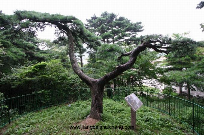 麒麟松位于獅子峰腰,近獅子林精舍。其胸徑50厘米,在樹高l.5米處分作兩干,分別朝東西方向斜展生長,高低錯落。高枝如麟角,低枝似麟尾,主干樹皮如麟甲斑斑,酷似麒麟之態。故名。今人有詩贊曰:“昂頭翹尾何其神,形同異獸號麒麟。國家昌盛呈祥瑞,預兆山河萬代春。”