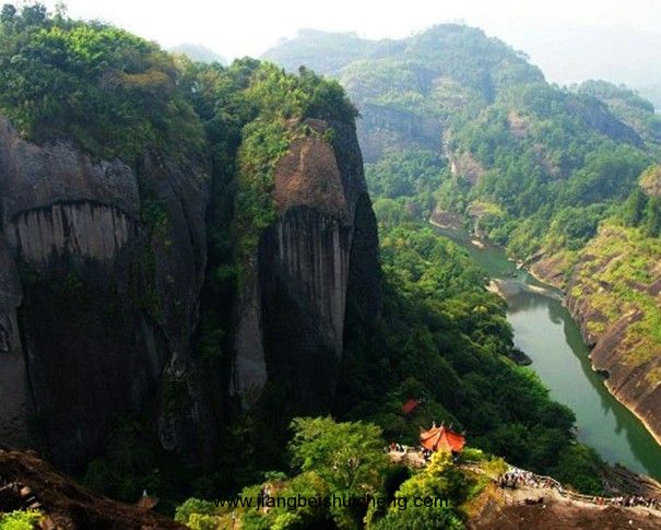 幔亭峰橫欹在大王峰北側,其麓相連,高不及大王峰。峰頂地勢平坦,有一片巨石,狀如香鼎,叫做宴仙壇。相傳當年武夷君曾在此設幔亭宴會鄉(xiāng)人,“幔亭”之名即由此而來。據宋祝穆《武夷山記》載:秦始皇二年八月十五日,武夷君與皇太姥、魏王子騫等十三仙人,在又平又寬的峰頂張幔為亭,結彩為屋數百間,大宴鄉(xiāng)人。應召而來的男女二千多人,循虹橋魚貫而上,到了峰頂,幔亭、彩屋鋪著紅云茵、紫霞褥,金宇綴花,馨香氤氳;鼓樂齊鳴,歌聲嘹亮;席間食品全非人世間所有。這個幔亭招宴的故事,流傳千年,至今不衰。幔亭峰丹崖峻拔,蒼松環(huán)簇,好似一座巨大的翠屏,南宋辛棄疾有詩道:“山上風吹笙鶴聲,山前人望翠云屏。蓬萊枉覓瑤池路,版權所有山東聊城聊之旅國際旅行社有限公司,轉載必究!不道人間有幔亭。”鐫在幔亭峰東壁的“幔亭”二字,大四方丈,為明吳思學所書。峰的半腰有一片巨石,渾然方正,上大下小,約莫可坐數十人,俗名“棋盤石”。相傳當年漢武帝派遣使者來武夷山,是在這里用乾魚祀武夷君的,所以又稱漢祀壇。司馬遷《史記》上都有記載。