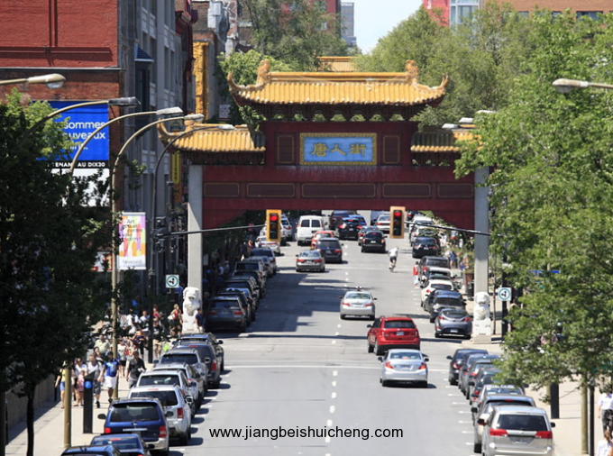 蒙特利爾唐人街是座名副其實的中國城。四座古典的中華彩繪牌樓,有如它的東西南北四座城門,形成了一個獨特的世界。在它環抱的范圍內,滿園春色都是中國店鋪中國字和中國商品中國人。在這里,中國話可以暢行無阻,法語、英語反而成了番語、外國話;在這里,有華人自己的教堂廟宇和醫院藥房;在這里,你可以采購到幾乎所有你想要的中國商品和華文書報。
