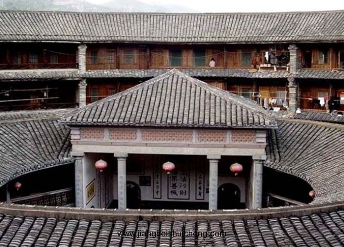 馥馨樓位于湖雷鎮(zhèn)下寨村。建于公元七六九年,至今已有一千二百多年歷史,是永定客家土樓群中最古老的一座。占地1275.76 平方米,高四層,墻身通體以生土夯成。馥馨樓沒(méi)有石基,這是沿襲了中原先祖的建筑技術(shù)和建筑形式,充分說(shuō)明了永定土樓與黃河流域傳統(tǒng)民居的淵源關(guān)系。樓四周有四米寬的護(hù)樓壕溝,門前設(shè)有吊橋通行,其底墻生土摻拌有石灰、紅糖,堅(jiān)固無(wú)比。馥馨樓又叫大樓廈或火燒樓、寨樓,坐落在閩西永定縣湖雷鄉(xiāng)下寨村的中心,是迄今為止尚能見(jiàn)到的最古老的方形土樓之一。