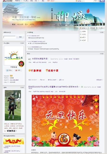 熱烈慶祝中國聊城博客截止20111231突破1600萬流量 新浪博客旅游博客第8名!
