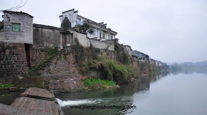 橫江在萬安南側(cè)由西向東流過,如練的江水由于東部古城巖的緣故,在這里作了弧形的彎曲。按照傳統(tǒng)的“風水”學說,橫江形成了萬安古鎮(zhèn)南面的一條“腰帶水”,為古鎮(zhèn)設置了理想的水環(huán)境。