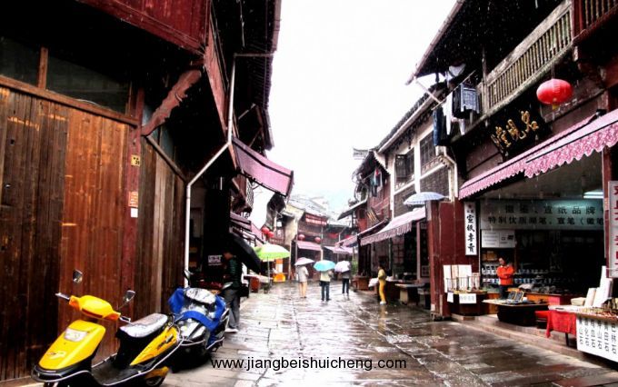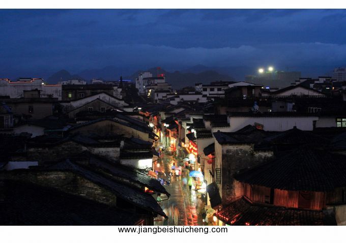 屯溪老街坐落在黃山市中心地段,鑲嵌在青山綠水之間。北依四季蔥蘢的華山,南伴終年如藍的新安率水。老街距今已有數百年歷史,全長832米,寬5~8米,是目前中國保存最完整的,具有宋、明、清時代建筑風格的步行商業街。