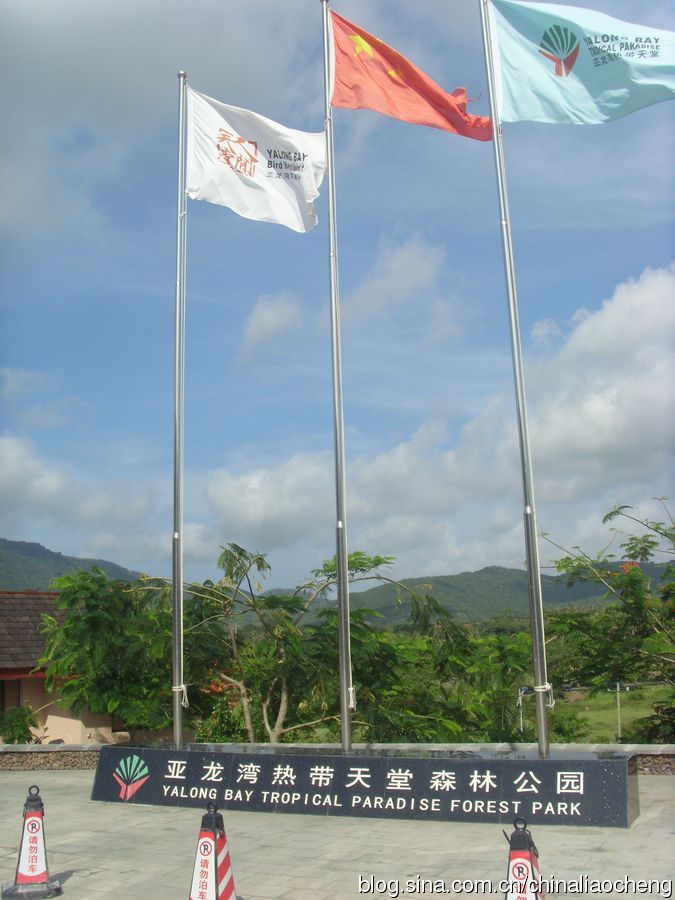 經(jīng)過一番跋涉,終于到達(dá)了亞龍灣熱帶天堂森林公園。看,五星紅旗隨風(fēng)飄揚(yáng)顯得多么奪目啊。